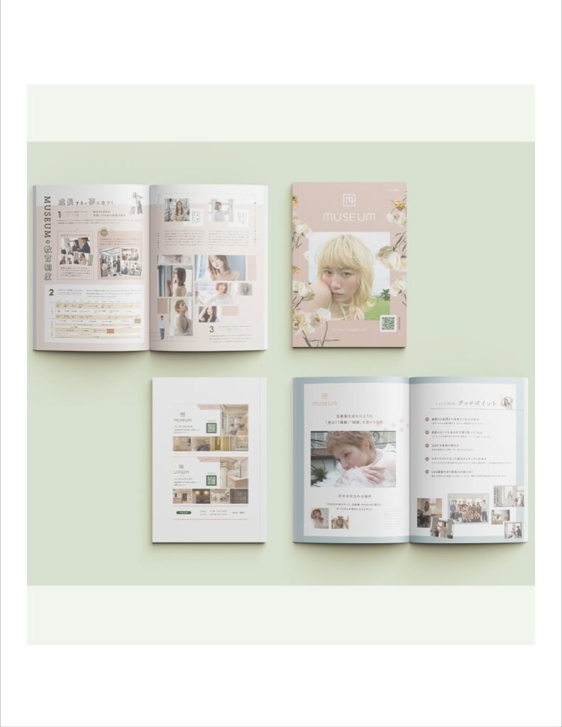 デザイン会社として、グラフィックデザインや名刺、パンフレット、チラシの制作を承っております。特に美容室やサロン向けのデザインが得意です。WebデザインやLPデザインもお任せください!