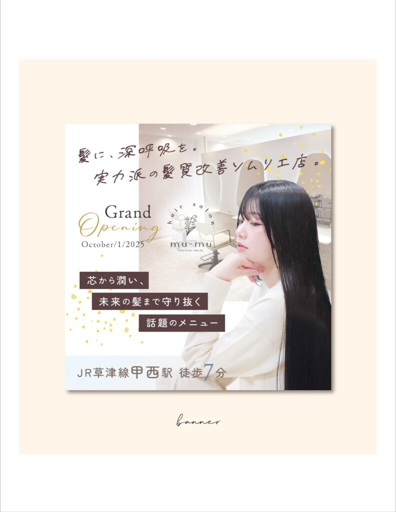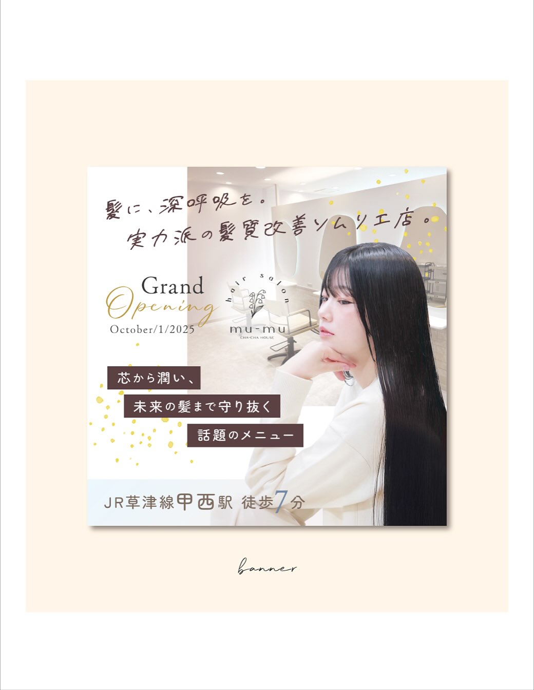 こんにちは!今回は滋賀県の美容室mu-mu様のインスタ広告バナーを担当させていただきました。